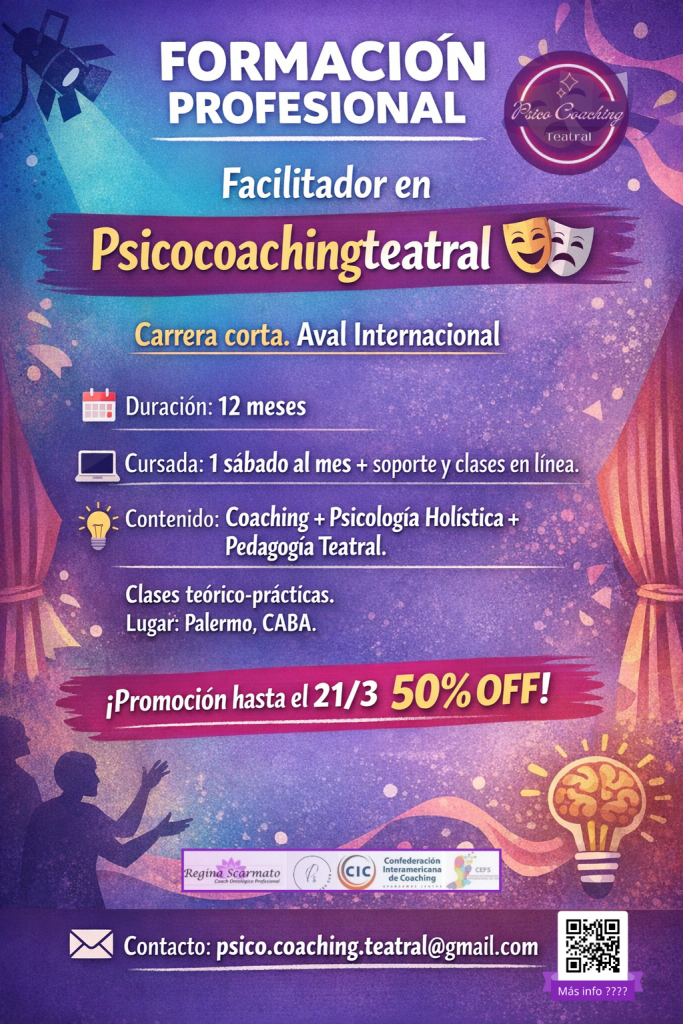 Te invitamos a la charla abierta sobre nuestra Formación Internacional en Psicocoachingteatral 🎭 el próximo Martes 17/3 19.30 hs. X zoom